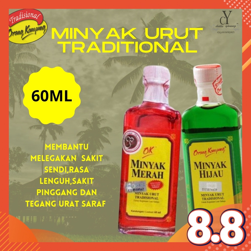 Orang Kampung Minyak Urut Tradisional Minyak Merah Minyak Hijau 60ml Shopee Malaysia